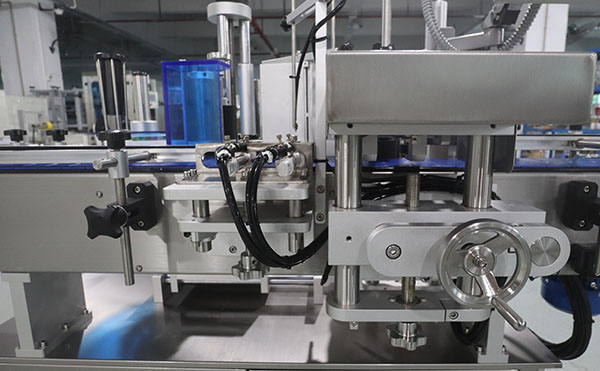 该设备的工作原理是通过流水线将瓶子输送至链板,经调距装置排列后进入光电感应区域。步进电机控制的卷筒贴标纸在接收到信号后自动送标,精准完成贴标工序。另一组光电传感器则控制后续标纸的输送,确保整个贴标过程连续稳定运行。